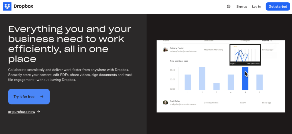 • Example (Good): Dropbox has a simple, intuitive navigation with a clear “Get Started” CTA button on the top right. This allows new users to easily access the most important action.