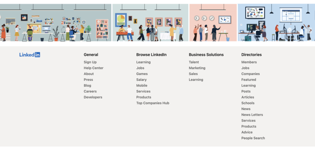 • Example (Good): LinkedIn includes company details, social media links, and a “Contact Us” button in its footer, giving users an easy way to engage after scrolling through the content.